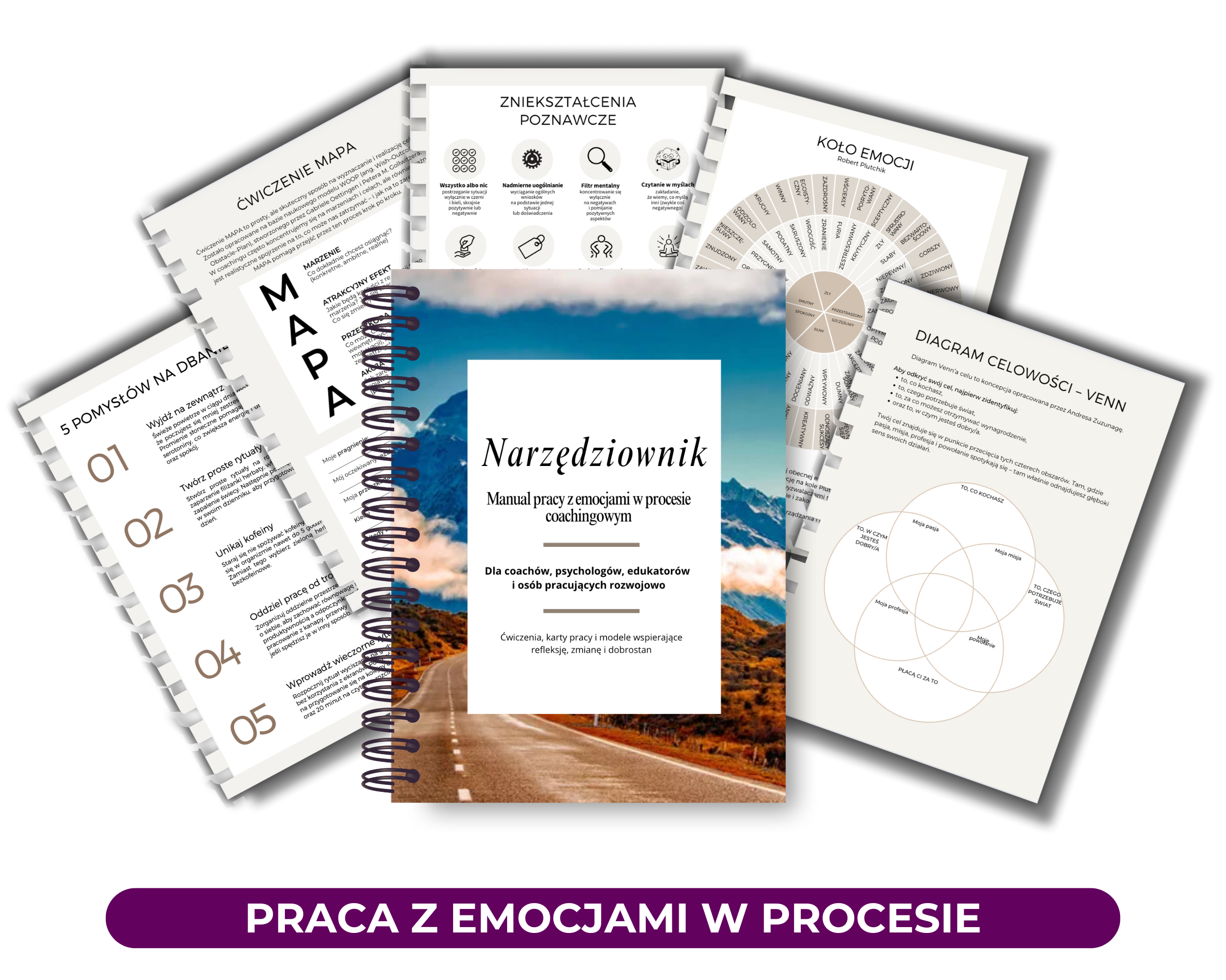 📂 Workbooki pełne profesjonalnych narzędzi i setki stron praktycznych materiałów – od „Koła Życia”, przez „Dziennik Troski”, „Narzędziownik do pracy z emocjami”, aż po specjalistyczne zestawy do pracy z lękiem, zazdrością czy poczuciem pustki.