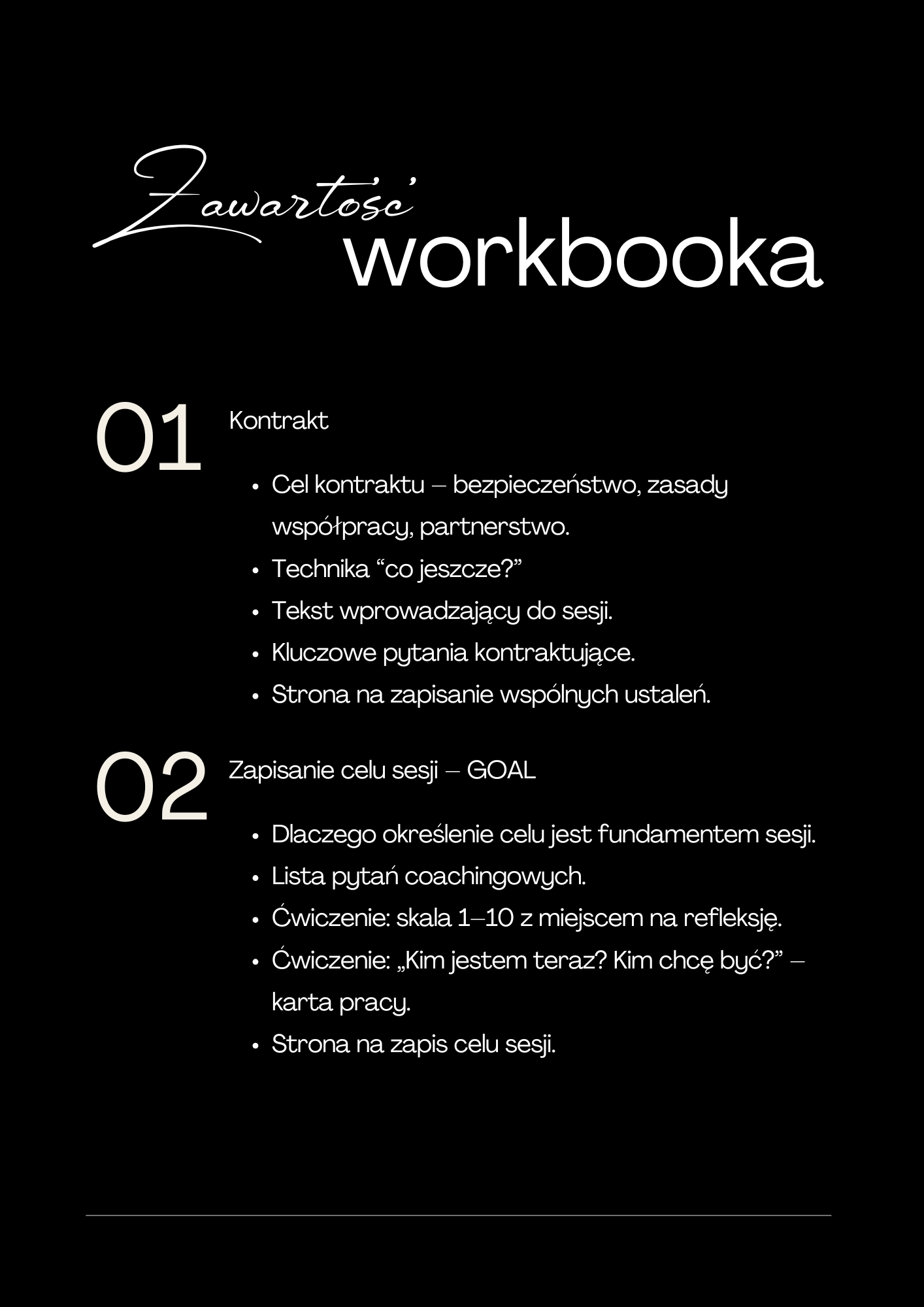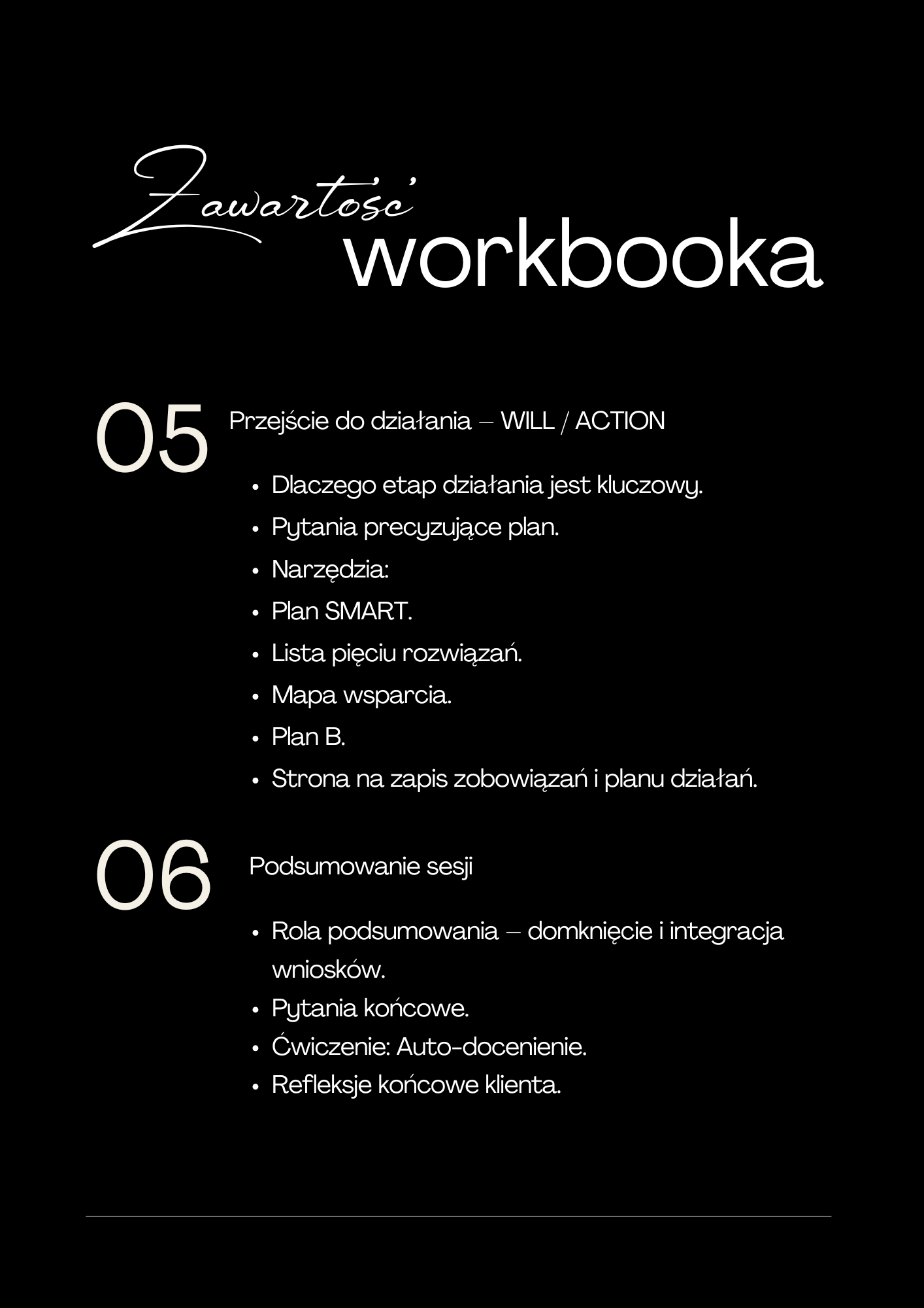 Workbook daje Ci kompletną mapę sesji – od otwarcia po podsumowanie.